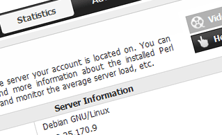 This section will offer you exhaustive information about the hosting server your web hosting account is hosted on. You can see the OS, the physical IP and the current PHP/Perl/MySQL versions used, find more information about the installed Perl modules and the incoming and outgoing mail servers, monitor the server load, etc.